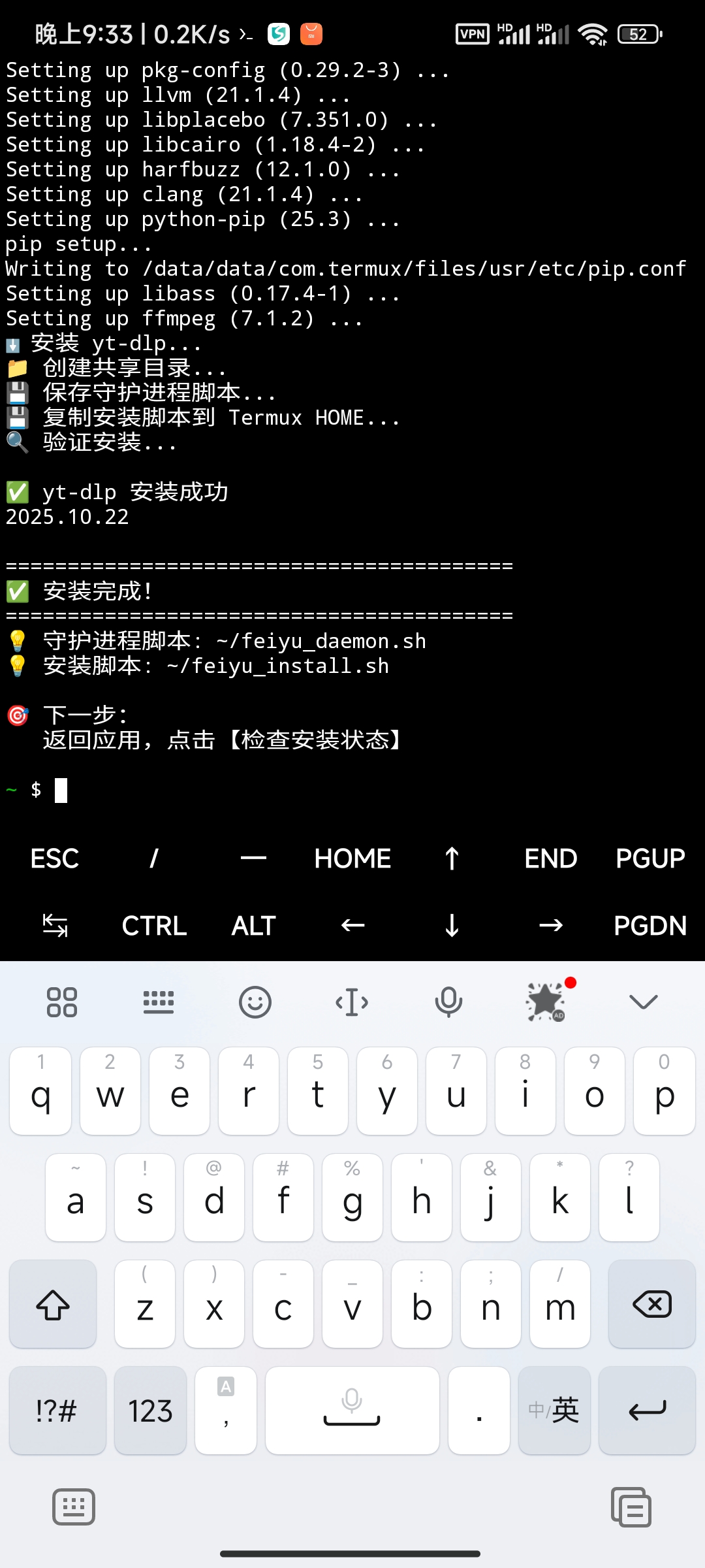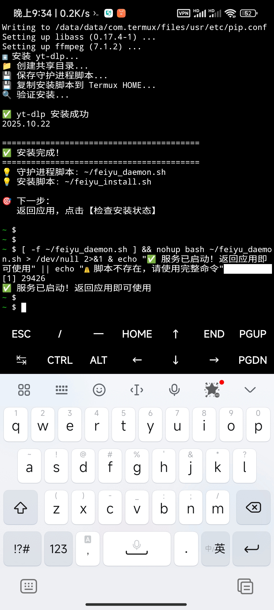 8、等待命令脚本执行完成,就可以返回“Kedou解析”的“Termux 模拟器设置”